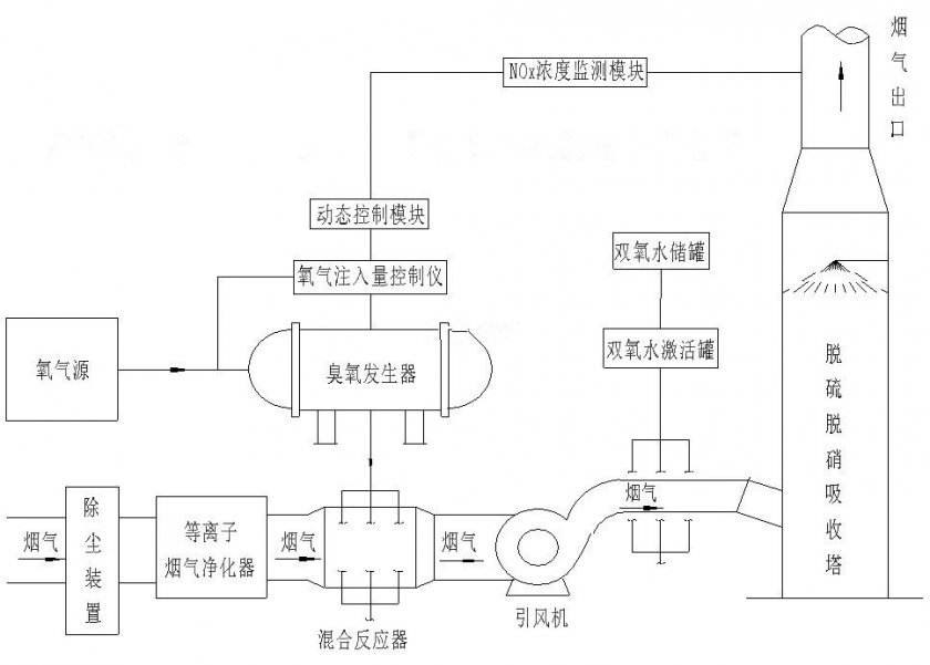 電廠脫硝工藝一般采用SCR工藝,在一定溫度和催化作用下,利用加氨還原的方法把氮氧化物還原為氮?dú)?。臭氧可以利用其?qiáng)氧化性把不可溶的低價(jià)態(tài)的氮氧化物氧化成可溶的高價(jià)態(tài)的氮氧化物,再利用堿化吸收洗滌工藝清除掉。臭氧煙氣脫硝不需要增高煙氣的溫度;不使用氨等還原劑;在NOx含量、煙氣量不穩(wěn)定條件下,控制靈活;維持90%以上的脫除率;同時(shí)處理重金屬;可配合同時(shí)實(shí)現(xiàn)脫硫。
